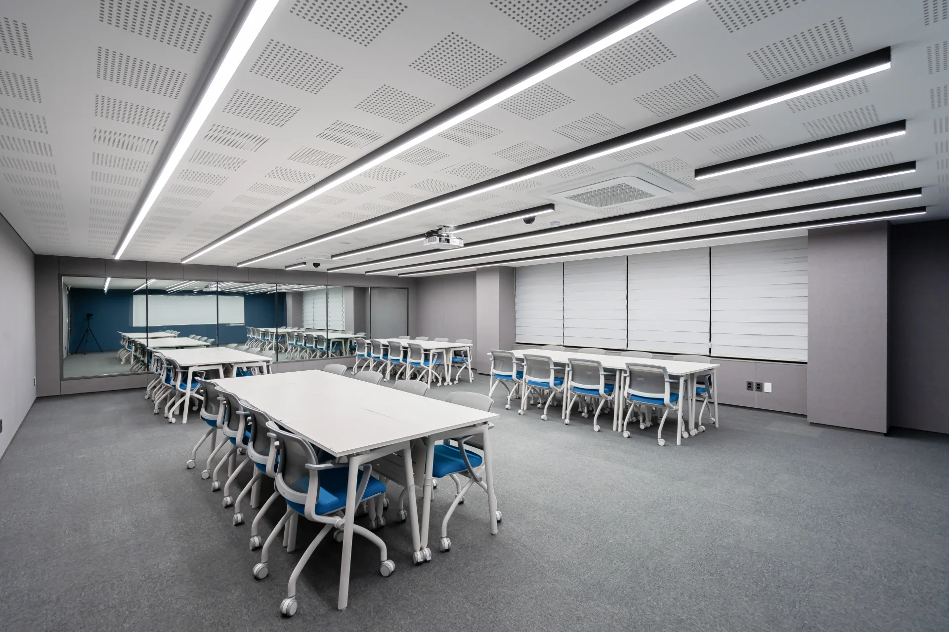 가변형 벽체는 필요에 따라 작은 회의실을 하나로 연결해 대회의실로 바꿀 수 있는 구조인데요. 이를 통해 평소에는 소규모 미팅에 최적화된 공간으로 사용하고, 많은 인원이 참여해야 하는 회의나 워크숍 때는 넓은 공간으로 전환해 활용도를 극대화할 수 있습니다.